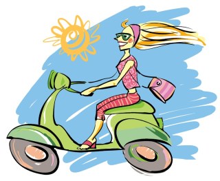 So this picture looks so unlike me it’s funny. The only thing that’s close to reality is the colour of the scooter (it’s a perfect match, in fact). But what isn’t that funny is that for a good chunk of my life I really wanted to look something like this. I particularly coveted two of her attributes: her super slim arms and her long, blonde hair – the kind of hair that would bounce along behind you. I got over wanting to be blonde a good while ago but I’ve never stopped wanting the long, thick, glossy, TV-ad kind of hair. And as for the arms, arm envy has been a big part of my life. I’ve often been jealous of my Latina friends’ tiny, toned arms or wished I had Michelle Obama’s long, elegant arms. (The First Lady’s toned arms originally caused quite a stir on the other side of the Atlantic, apparently.)
